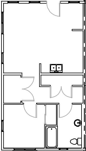 | 2 Bedroom | $619 - $943 | 2 bed / 1 bath | 900 Sq. Ft. | Plan Layout |