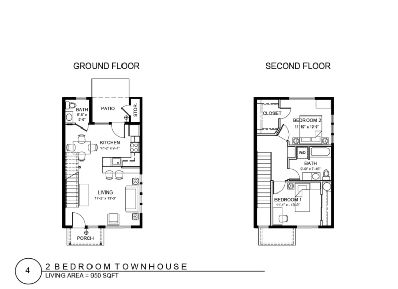 2 Bedroom Townhome | $320 - $735 | 2 bed / 1.5 bath | 950 Sq. Ft. | Plan Layout |