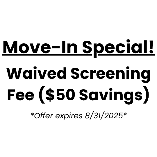 Waived Screening Fee ($50 in Savings) & 50% Off Security Deposit