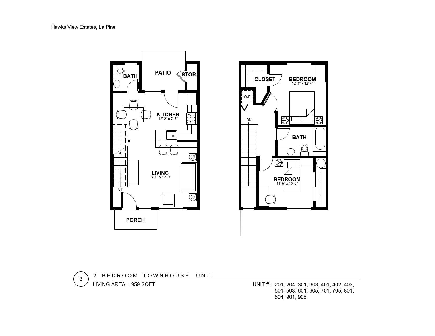 2 Bedroom | $1162 - $1162 | 2 bed / 1.5 bath | 959 Sq. Ft. | Plan Layout |