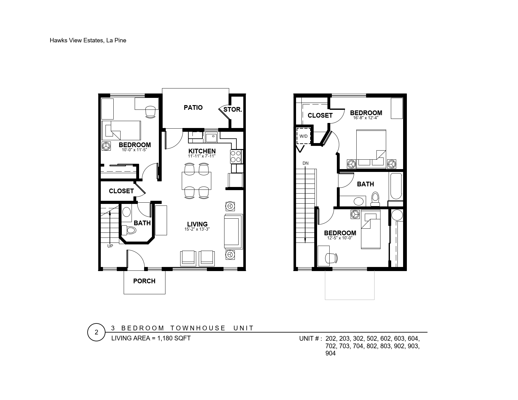 Hawks View Estates is located in the quiet community of La Pine Oregon near schools, shopping, banking and restaurants. Enjoy spacious, open floor plans that come complete with modern amenities such as stacked washer and dryer, dishwasher and air conditioner for those hot summer nights. The Packaged Terminal Heat Pumps, LED lights, and energy star appliances save you money on your power bill. Owner pays for water, sewer, and garbage. Income restrictions apply.