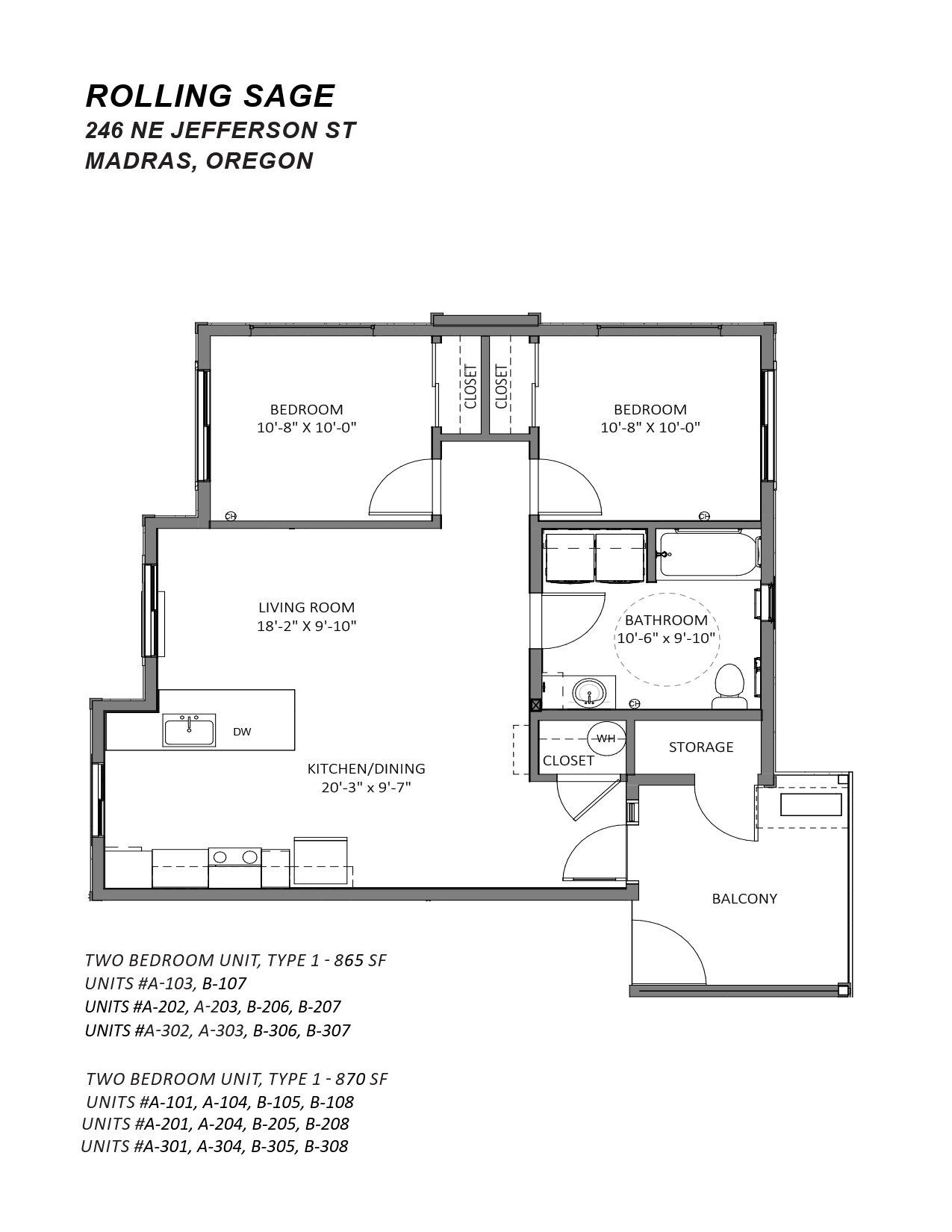 2 Bedroom | $410 - $914 | 2 bed / 1 bath | 865 - 870 Sq. Ft. | Plan Layout |