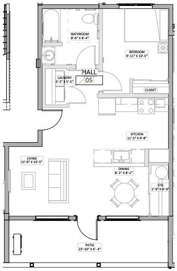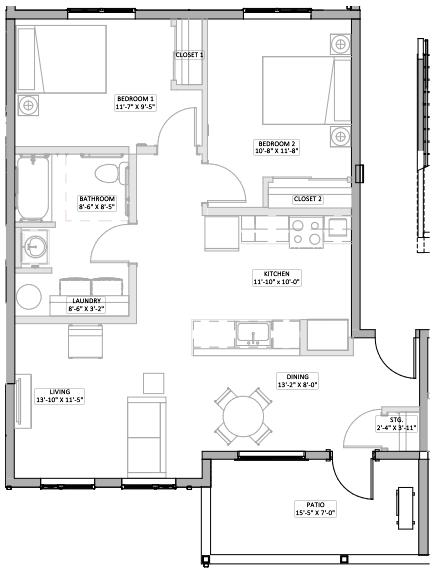 2 Bedroom | $950 - $950 | 2 bed / 1 bath | 900 - 929 Sq. Ft. | Plan Layout |