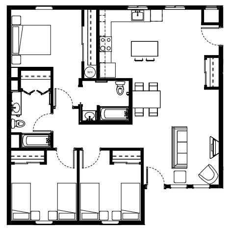 | 3 Bedroom | $1173 - $1173 | 3 bed / 2 bath | 1,112 Sq. Ft. | Plan Layout |