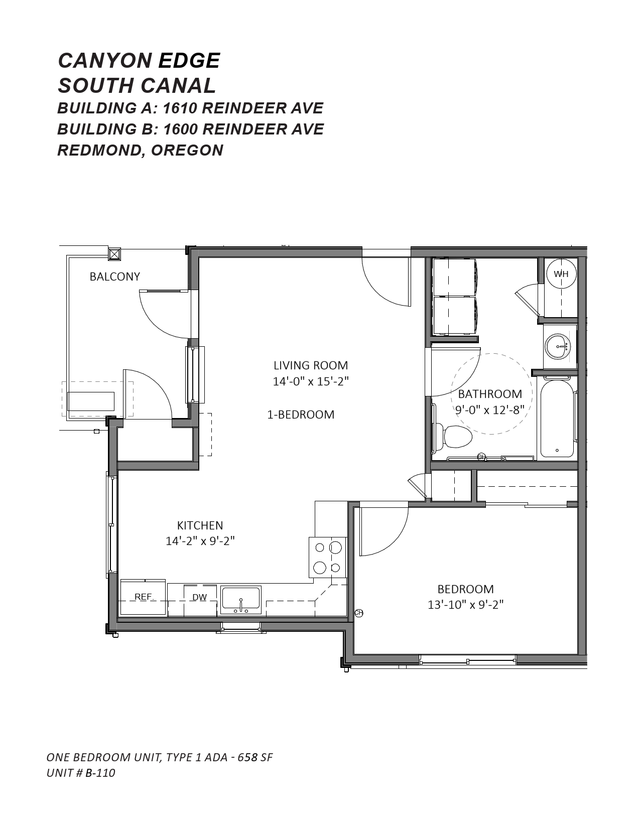 | 1 Bedroom ADA | $977 - $977 | 1 bed / 1 bath | 658 Sq. Ft. | Plan Layout |