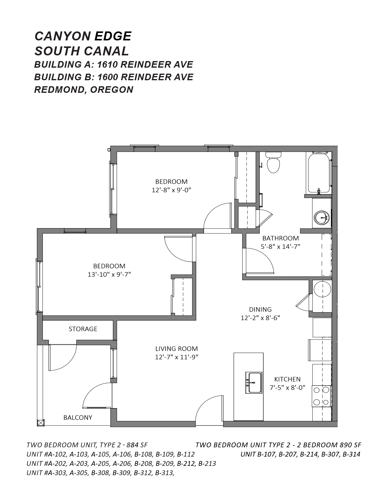 | 2 Bedroom | $536 - $1176 | 2 bed / 1 bath | 890 Sq. Ft. | Plan Layout |