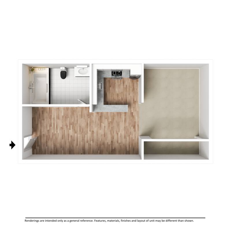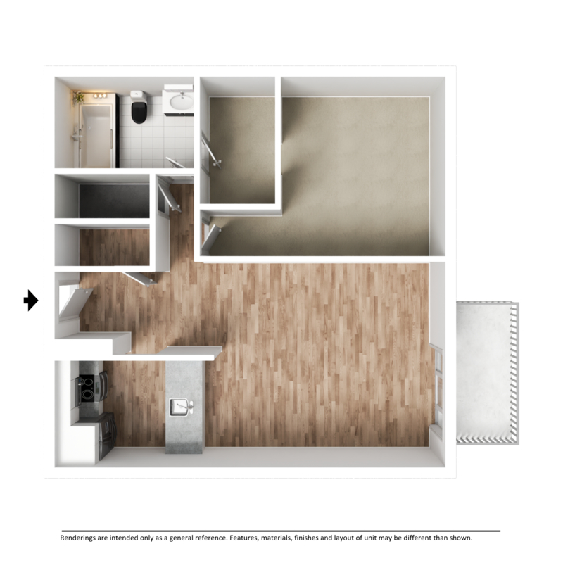 Studio | $1311 - $1586 | 0 bed / 1 bath | 315 Sq. Ft. | Plan Layout |