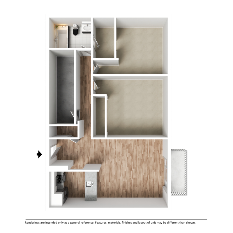 2 Bedroom | $1685 - $2039 | 2 bed / 1 bath | 850 Sq. Ft. | Plan Layout |